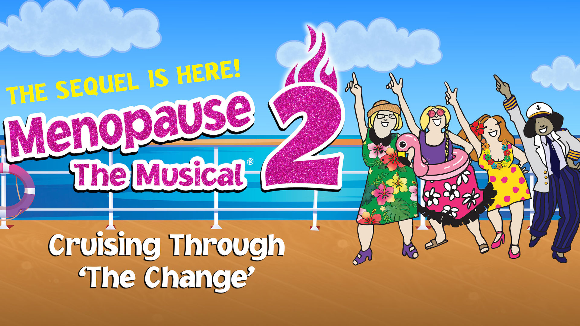 All aboard, sisters! The hysterical sequel to the smash-hit Menopause The Musical® is finally here! Five years after their chance encounter in a department store, we set sail with our beloved ladies for more high jinks on the high seas. Menopause The Musical 2: Cruising Through ‘The Change’® is a hilarious and heartfelt look at the joys of menopause and friendship — plus hot flashes, mood swings, and memory lapses! Join us on a trip of self-discovery, backed by a new soundtrack of toe-tapping parodied hits from the 70s, 80s and 90s. For these four ladies, menopause was not the end, but the beginning of a beautiful friendship where love conquers all, and friendships never fail.